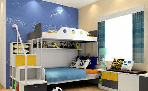 L型上下床更灵活,床尾可以设计成圆弧型,还可以把衣柜换成小书桌哦!